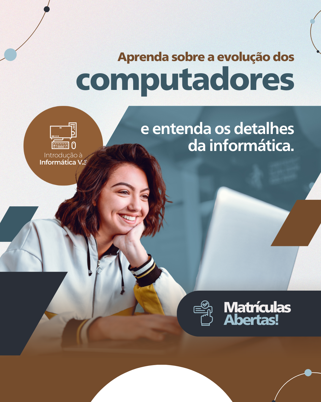 O aluno ingressará no uso da informática em suas mais variadas aplicações, desde o conhecimento básico de um computador, passando por softwares de edição de texto e planilhas, para uso em funções iniciais em um escritório.